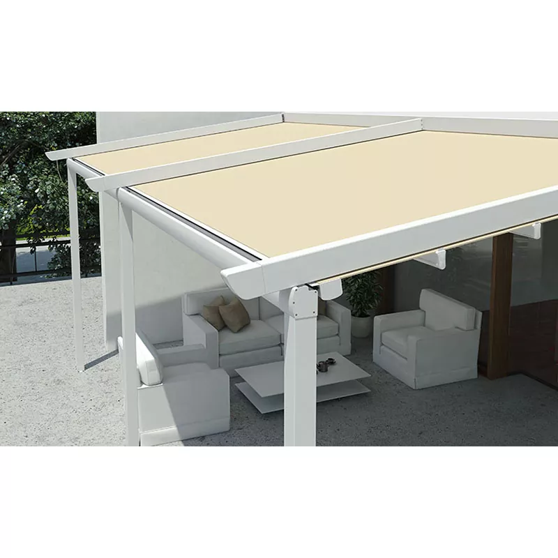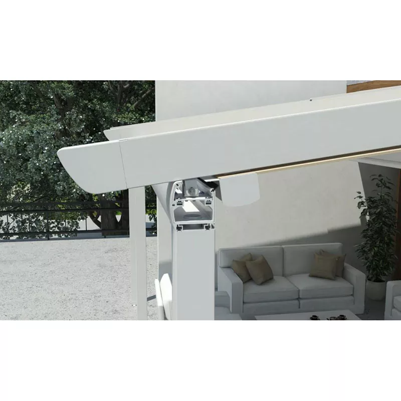 Huippuluokan sähköinen sisäänvedettävä pergola alumiinirakenteella, Pergola Roof tarjoaa kestäviä ja esteettisiä järjestelmiä, joilla voit hyödyntää patioasi, terassiasi ja takapihaasi ympäri vuoden. Se on vesitiivis sisäänrakennetulla kourulla ja siinä on upotettu LED-valaistus.