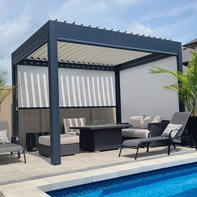 Vapaasti seisova moottoroitu säleikkö pergola voidaan helposti mukauttaa erilaisiin arkkitehtonisiin olosuhteisiin, mikä laajentaa tehokkaasti käyttökelpoista tilaa ja tarjoaa ihmisille laajemman valikoiman vaihtoehtoja ulkoiluun.
