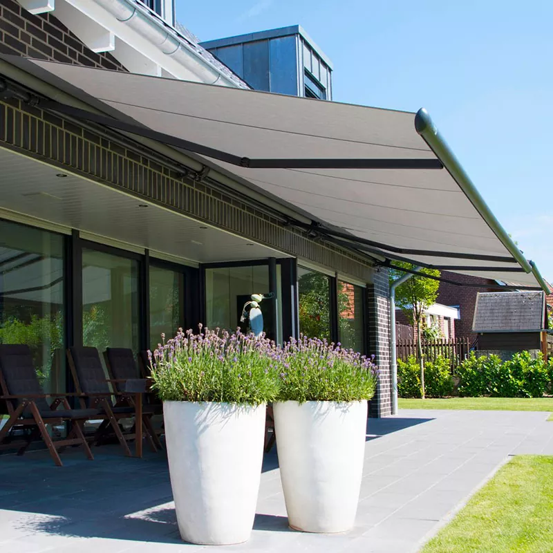 Markiisin kankaalle, varrelle ja mekanismeille osittain suojattu puolikasettimarkiisi sopivat täydellisesti suojaisempiin puutarhoihin ja patioihin.